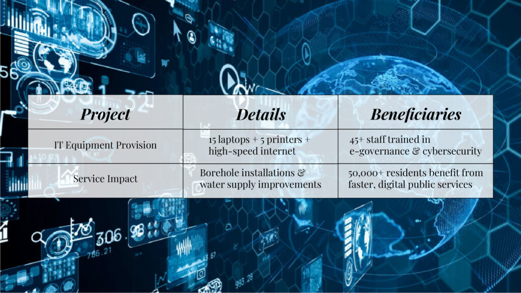 To turn that belief into action, the Foundation equipped the Okitipupa Local Government Secretariat with 15 laptops, 5 printers, and high-speed internet, creating a modern infrastructure for smarter, faster, and more transparent governance.