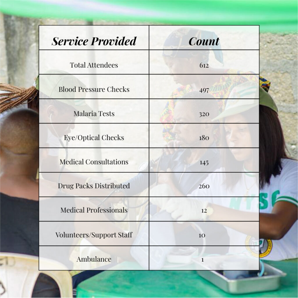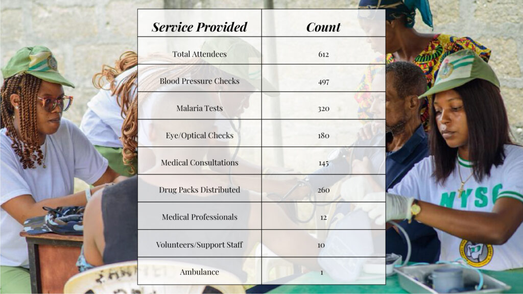 In April 2025, that belief came to life through the Community Health Fair held at the Okitipupa Local Government Secretariat Health Centre. The event brought together doctors, volunteers, and local health workers in a shared mission: to keep families healthy before disease takes hold.